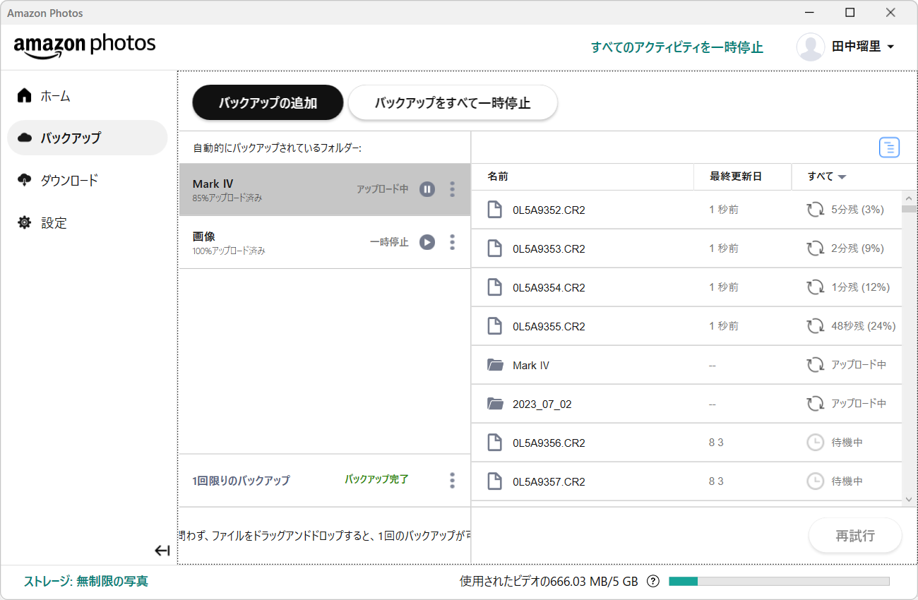 - Amazonプライム加入で画像の保存容量無制限